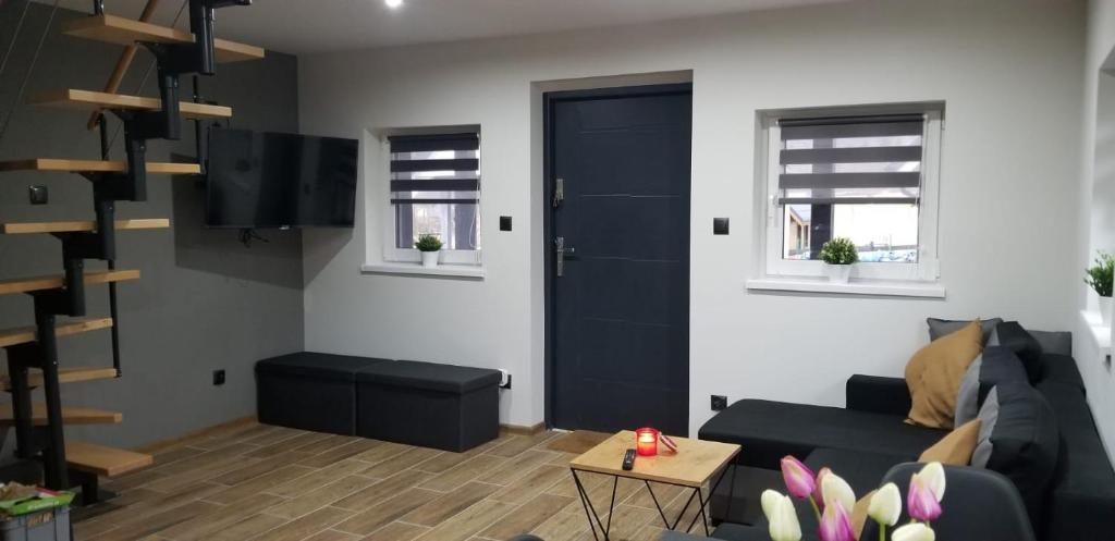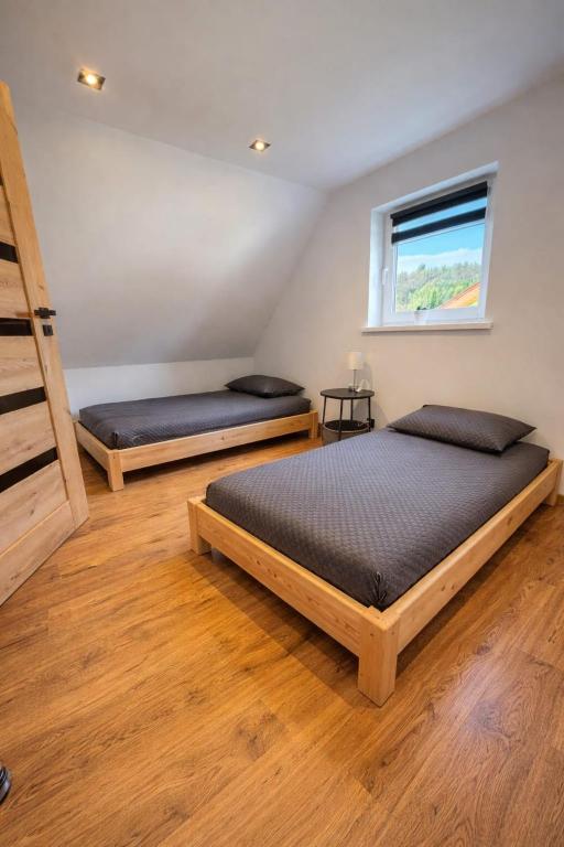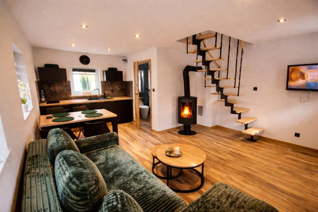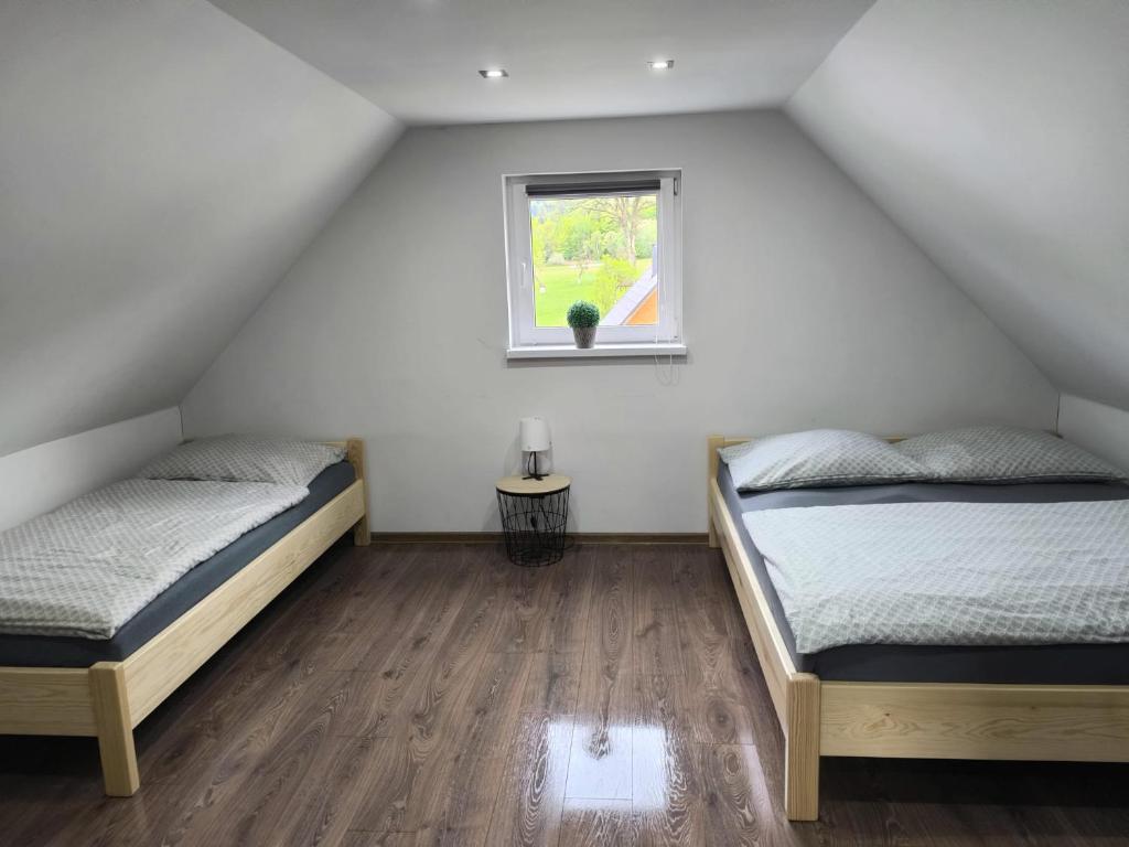 - Nocleg w domkach wolnostojących z przyległym terenem zielonym.